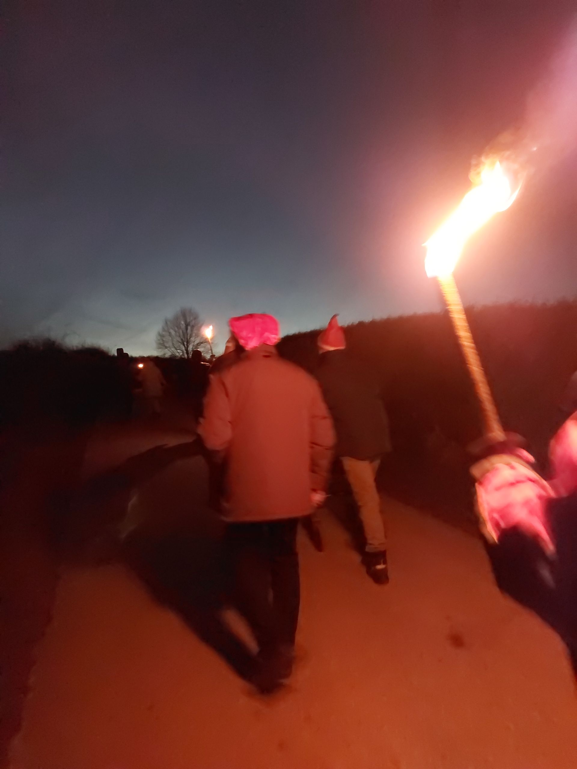 mit den Fackeln in die Nacht raus, einfach mal los in das Dunkel ist aufregend, es mutet fast gefährlich, das Feuer ist echt und vor dem Mut wartet noch die Angst und braucht eine zweite Hand, ein gutes Wort und dann wird das Licht ins Dunkel getragen. Der Wind zerrt an der Flamme, Funken fliegen, der Weg holprig und die Fackeln brennen anders als gedacht, es ist kühl, es ist ein Abenteuer, das bestanden glücklich macht und stolz und es gibt was zu erzählen. einfach mal eine Fackel nehmen, ein gutes Wort, eine Tat, ein Mittagessen, eine Hilfe, einen Euro und ins Dunkel hinein, mitten hinein, Segen sein als Licht.