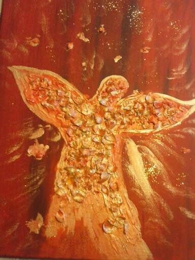 Engelbild aus zerbrochenen Muscheln oder Glas, auch in anderen Farben und Größen möglich; jedes Bild ein Einzelstück und kann etwas vom gezeigten Foto abweichen.