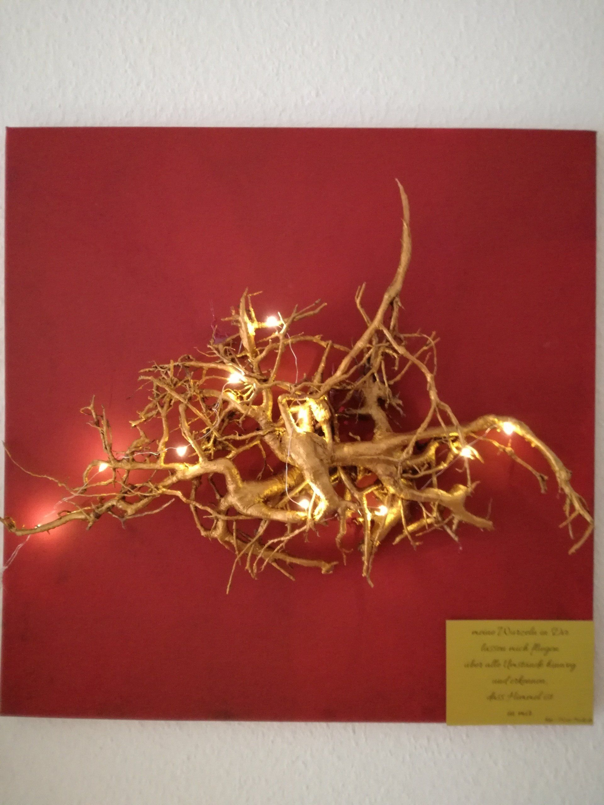 Bild mit Wurzel und Licht, auch in anderen Farben und Größen möglich; jedes Bild ein Einzelstück und kann etwas vom gezeigten Foto abweichen.